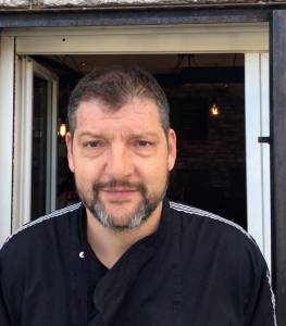 Au Gré des Saisons restaurant Le Thoronet - Aiguisez vos crocs, ajustez vos museaux! A pas loin du touristique centre-village, voyez-vous au bout du parking la récente enseigne de bois lettrée? Ça pourrait être la façade d’un “fruits et légumes” ou d’une librairie. J’y suis entré: c’était l’heure de manger! Sûr que l’extérieur est éloigné du faste lustré d’un Relais & Châteaux, mais dedans la maison mes rossignols mignons c’est vraiment trognon. Une jeune femme équipée d’un sourire comme un soleil vous accueille chez elle comme si vous y aviez votre rond de serviette depuis Balladur 1er ministre! Sur la gauche dans sa cuisine ouverte, son compagnon de cuisinier mouline est à pied d’œuvre et à mains habiles depuis tôt le matin. Vu le niveau de ses recettes, je confirme qu’il n’est pas là pour la photo.
