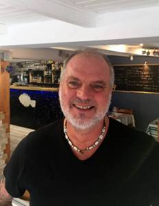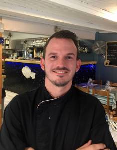 Friture de jols et de calamars, poulpe de roche grillé aux herbes, soupe de poisson de roche, cabillaud à la crème d’ail, tarte fine de crabe à l’avocat et crémeux yuzu, soupe de butternut, espuma de foie gras et brioche toastée. Mauricette, la fausse blonde d’Aquitaine qui ne met jamais ses yeux dans le même panier, lit un intitulé qui lui fait frétiller du nez: “filet de chapon, courge rôtie au miel”. Elle en bavait sans retenue que le chef Cédric Guérin efface ce plat de l’ardoise avec son éponge! La dame au chapeau vert devient verte comme son chapeau. Qu’on lui coooupe la têêête! On se replie avec bonheur sur une entrée partagée brochettes de moules panées, rouille qui lui redonne le sourire, enfin ce rictus si particulier qui n’appartient qu’à elle et au mérou. Recette simple comme bonjour, rouille maison “pas pour les parisiens”. Impec’ pour envisager la suite en contemplant les mouettes se chamailler au-dessus des vaguelettes argentées de reflets joueurs d’un vigoureux soleil d’automne déjà bas. C’est beau hein? Oui, et puis c’est bon aussi: 14,5/20. Par pure vengeance personnelle à l’endroit du chapon qui lui avait fait faux bon, Mauricette s’envoie la gouleyante pizza 3 fromages, bien connue de nos